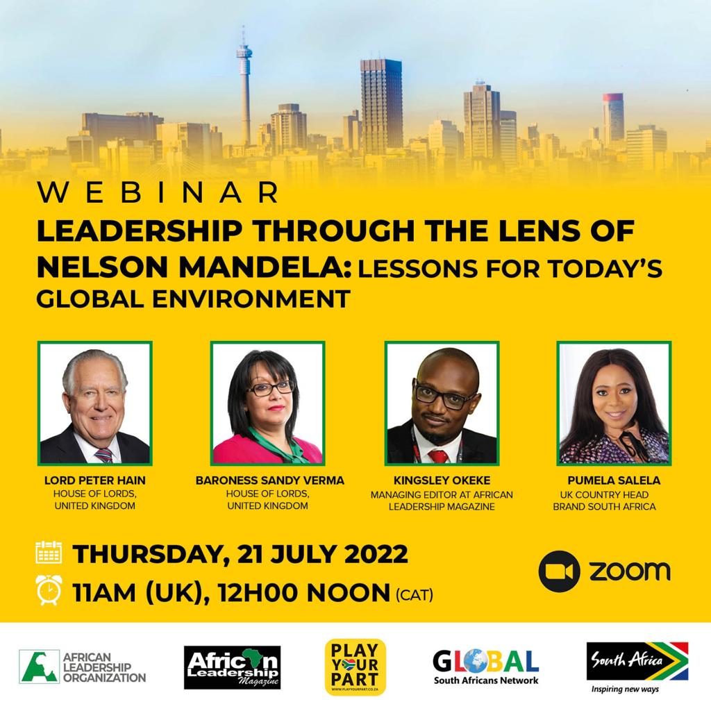 The webinar, which is designed to celebrate one of Africa’s most extraordinary leadership exports-Nelson Mandela, is organized in partnership with the African Leadership Magazine U.K.