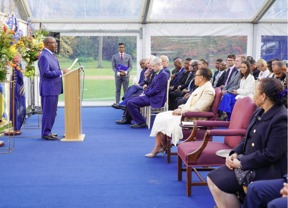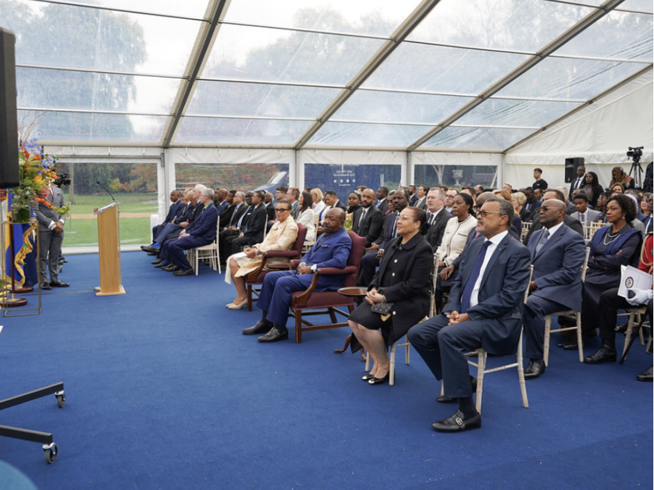 The Gabonese flag was ceremoniously hoisted on the roof of Marlborough House to the tune of Gabon’s national anthem.